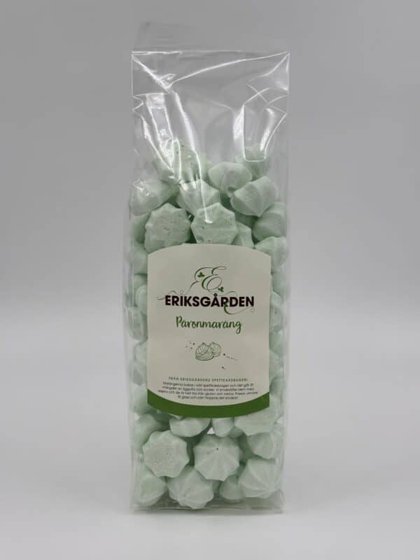 Med en härlig smak som för tankarna till päronglass är den här marängen en riktig hit bland de kunder som fått provsmaka i butiken. Smaken är framtagen av vår spettkaksbagare Anna och marängerna är bakade av henne inne på vårt bageri i Sjöbo.